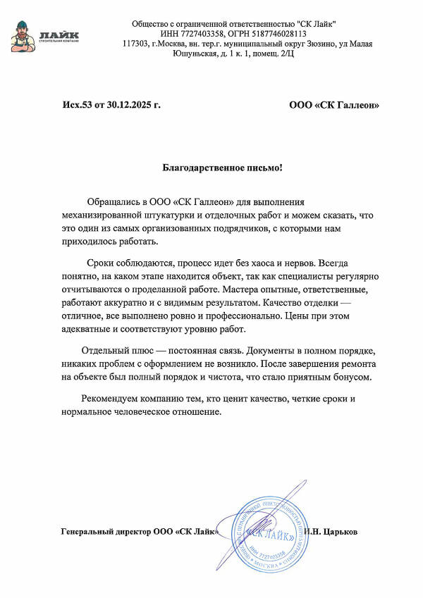 Гарантия на работы 1 год, полный документооборот